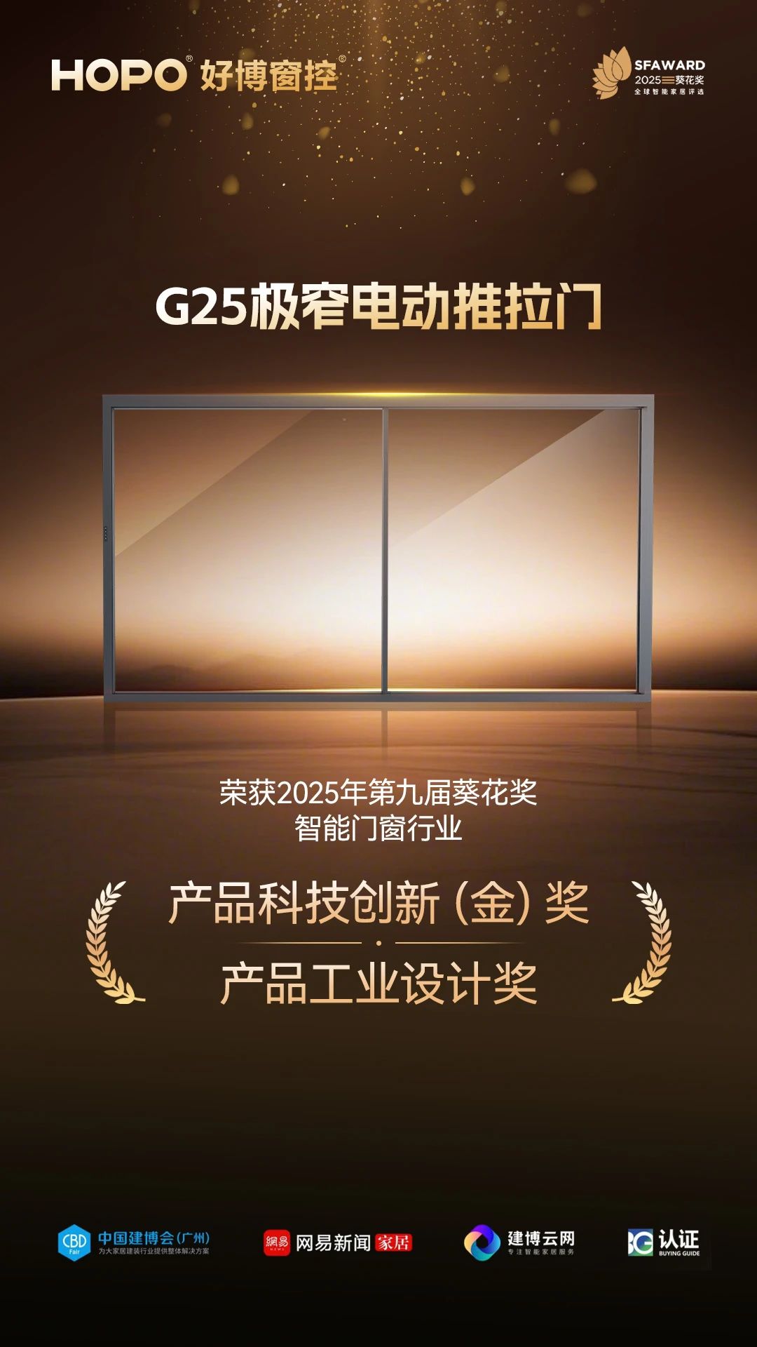 ·G25极窄电动推拉门-智能门窗行业产品科技创新(金)奖