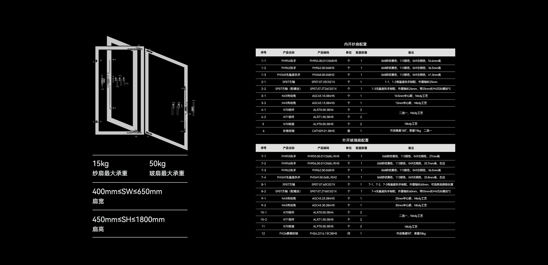 纱扇、玻扇铰链均带定位功能