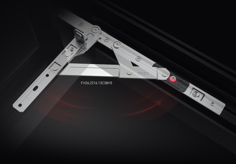 玻扇铰链双限位抗风压设计
